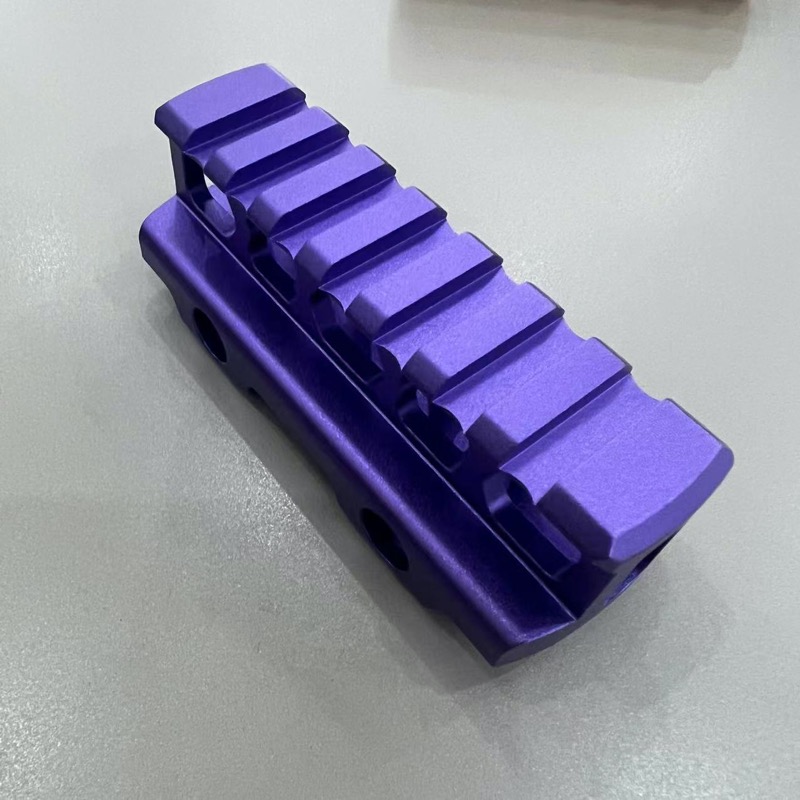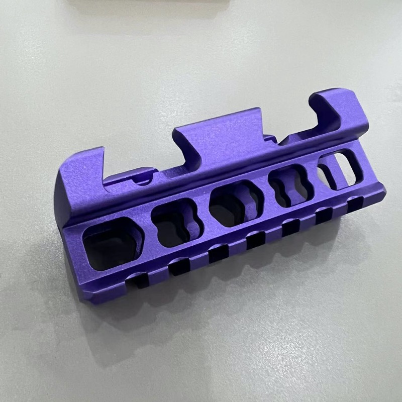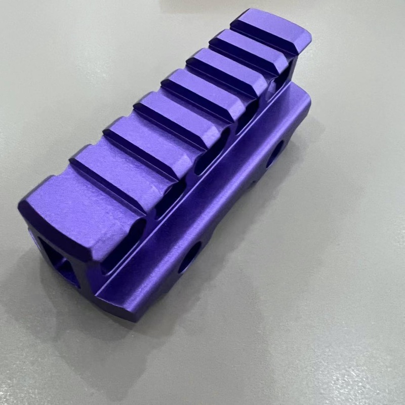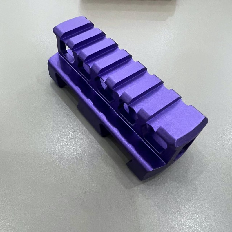 100目噴砂,表面細膩美觀,紫色氧化外觀件。